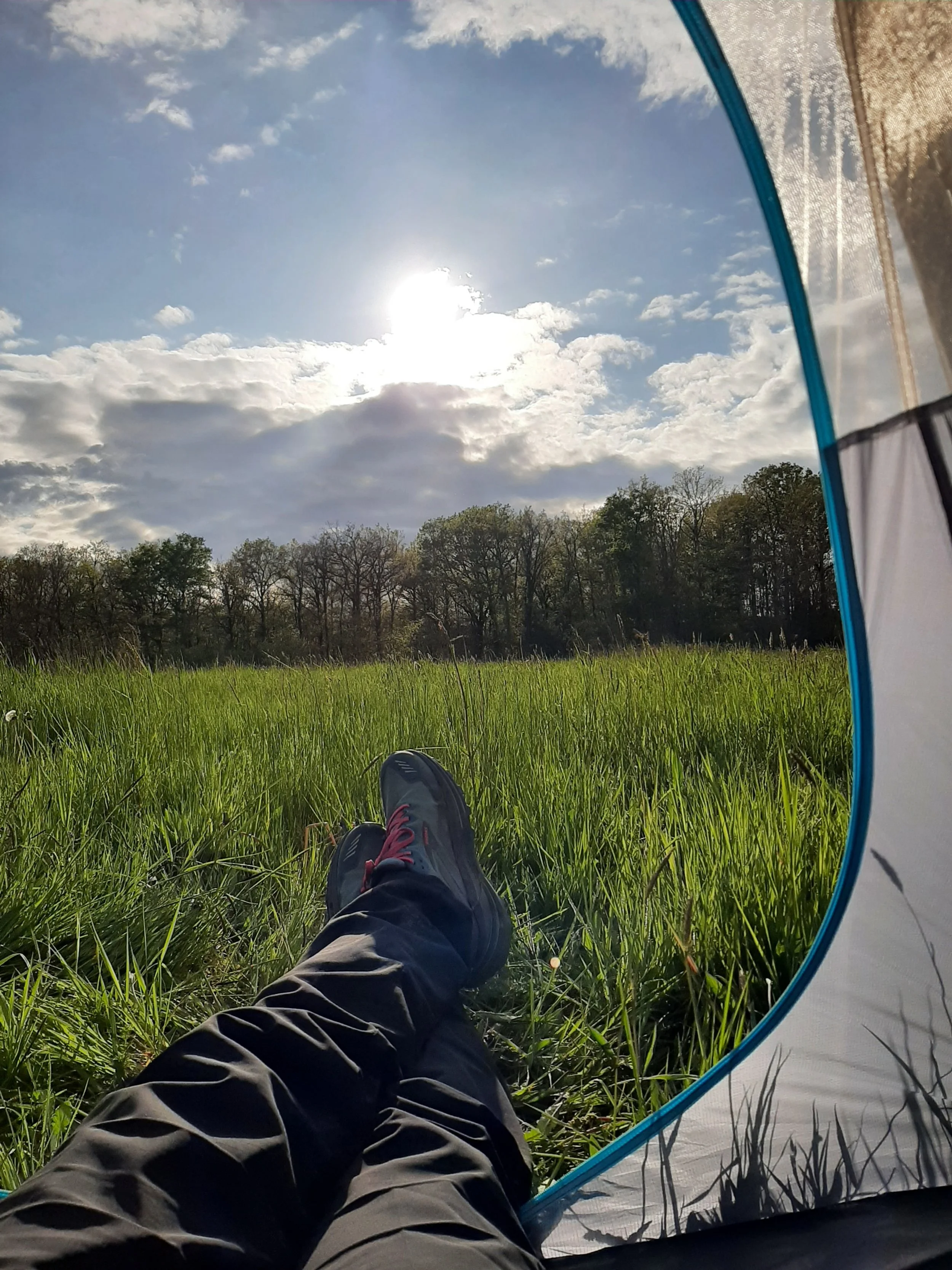 Henk had de eerste eindstop, ik vond na 22.4km een plekje voor mn tent en Caroline en Marjoke liepen door tot het volgende dorpje.